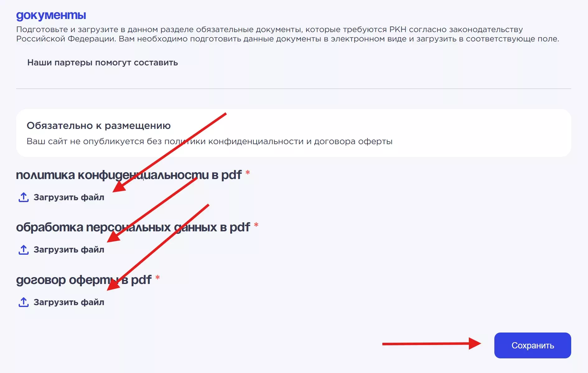 Если вам будет необходимо разместить дополнительные документы, напишите нам в службу поддержки.