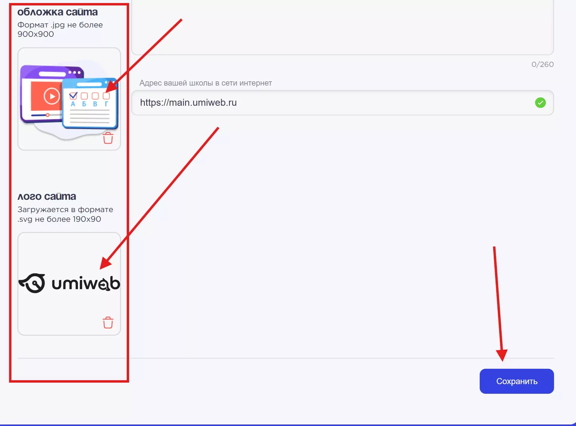 - Название школы - главное название школы, так же является заголовком Title главной страницы.