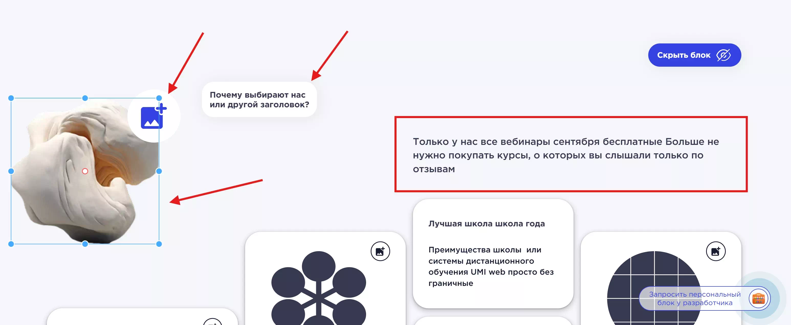Данный блок можно оформить по своего усмотрению, по умолчанию он называется «Почему выбирают нас», вся информация в блоках является редактируемой: