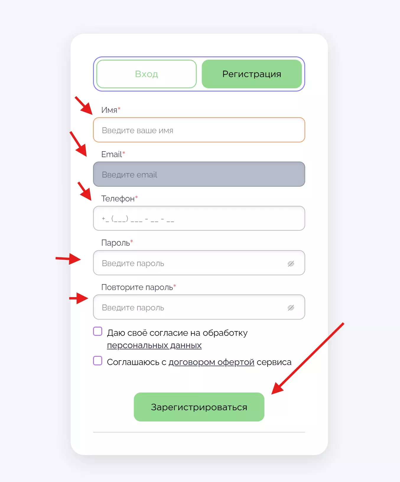 На платформе обучения можно пройти регистрацию без приобретения курсов, для этого прейдите в раздел «Регистрация» введите обязательные данные и нажмите кнопку «Зарегистрироваться»